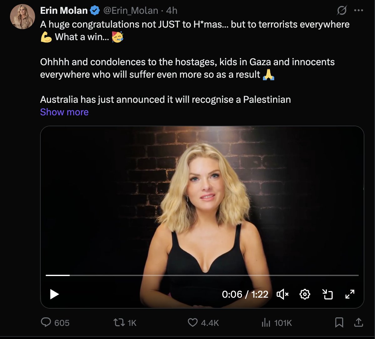 1st Zionist claims this is somehow good for "terrorists" when it's Israel who's doing the terror attacks, those children who's being attacked by Israel has nothing to do with terror, and also She thinks the crazy bulldozing of words will work in 2025, no it doesn't, no matter how much big words you use, people don't take you seriously, you can say things more flashy, more crazy, more insane but nobody except some Zionists are going to take it seriously.